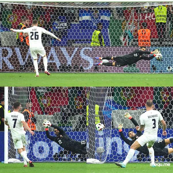 进入紧张刺激的点球大战,葡萄牙门将迪奥戈-科斯塔发威了,连拒对手3粒点球,为球队取得胜利!